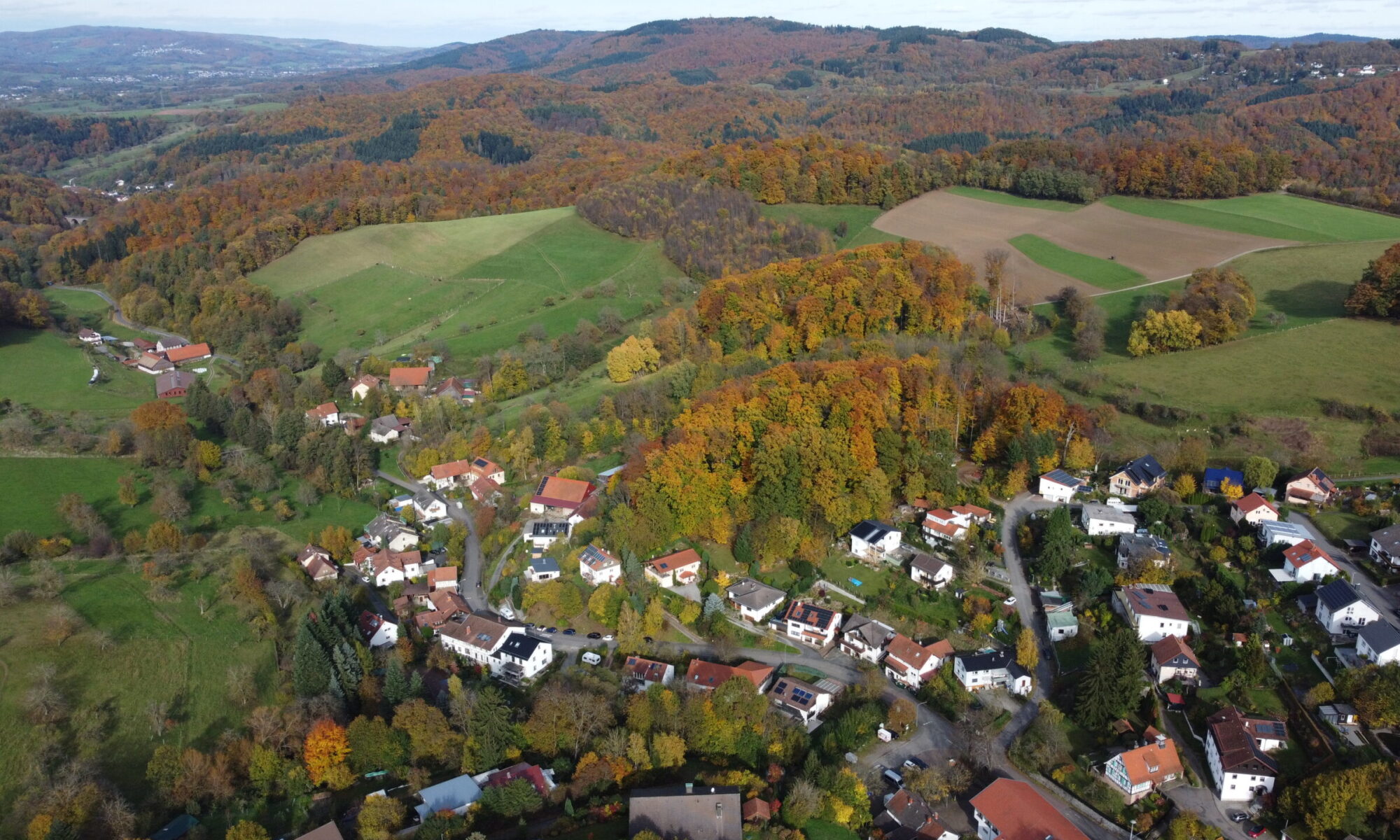 Blick vom Ireneturm (13.08.2022) rechts hinter dem Steinbruch liegt Vöckelsbach